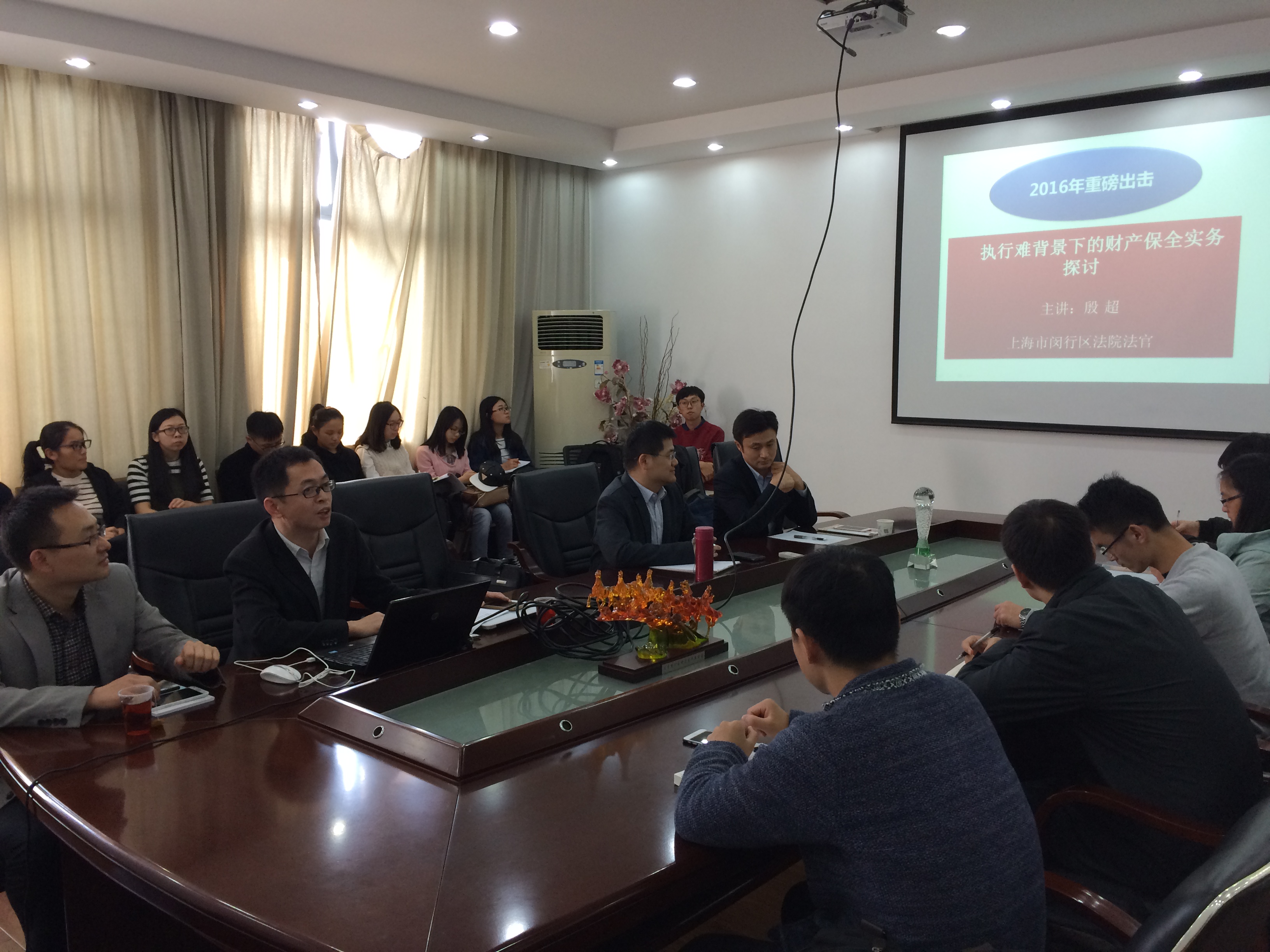 为了迎接华理kaiyun开云官方建院十周年,kaiyun开云官方于11月4日下午成功举办一场名为“执行难背景下的财产保全研究”的学术沙龙。本次活动的主讲人是闵行区人民法院执行局的殷超法官,参与人有上海市瀚鸿律师事务所主任王徐苗律师、我校社会与公共管理学院副院长刘晓亮副教授、以及我校kaiyun开云官方副院长吴亮副教授,四十余位研究生全程参与了本次活动。