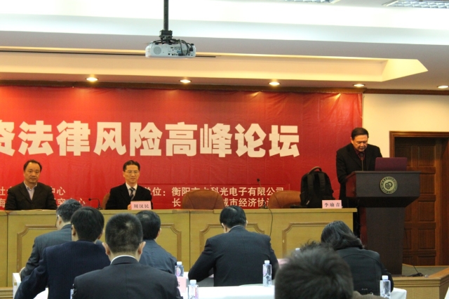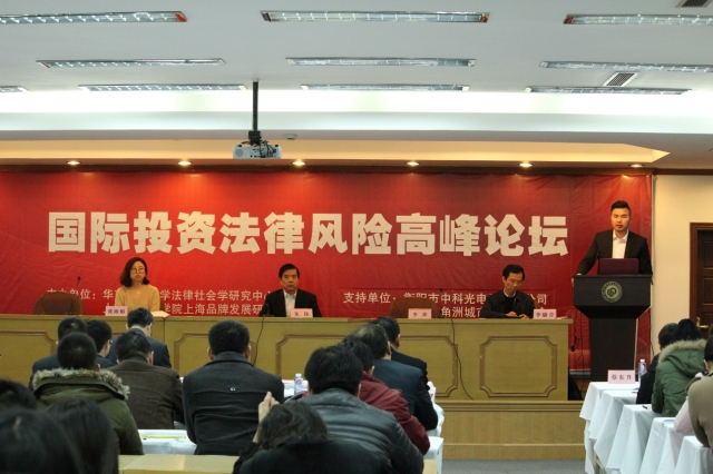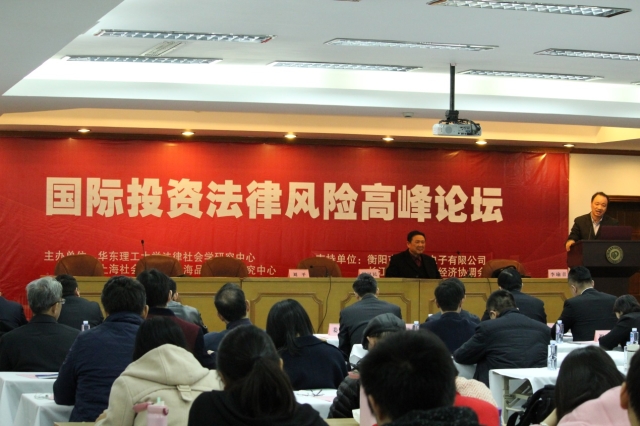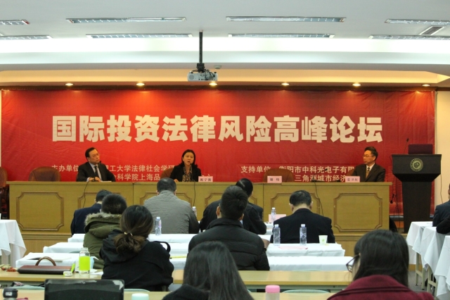 2016年11月25日,国际投资法律风险高峰论坛在kaiyun开云官方(徐汇校区)逸夫楼举行,会议由kaiyun开云官方法律社会学研究中心与上海社会科学院上海品牌发展研究中心、上海市健康安全环境(HSE)研究会共同主办,衡阳市中科光电子有限公司、长江三角洲城市经济协调会品牌建设专委会、上海融孚律师事务所支持举办。国内外企业的高管,高校及研究机构的专家、学者,律师、公司法务等法律实务工作者以及kaiyun开云官方研究生等,约70余人参加了会议。