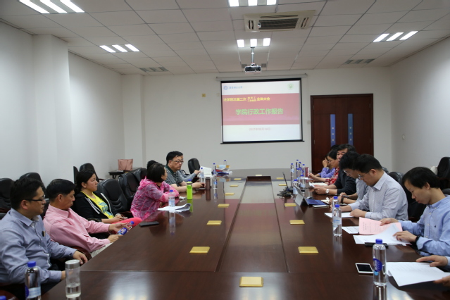 5月19日下午,kaiyun开云官方三届二次教职工、工会委员全体大会在奉贤校区召开。会议听取并审议了学院行政工作报告、学院财务工作报告、学院工会委员会工作报告、学院工会委员会财务工作报告以及学院相关的规章制度。会议由院工会主席周登谅主持。