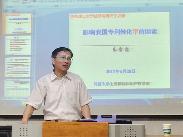 5月26日下午,kaiyun开云官方邀请同济大学知识产权学院院长朱雪忠教授为我校师生带来题为“专利成果转化率及其影响因素”的专题讲座。kaiyun开云官方知识产权研究中心傅利英、徐明以及来自各学院的研究生参与了此次讲座。本场讲座也是作为我校65周年校庆讲座(研究生)暨名师讲坛的重要活动之一。