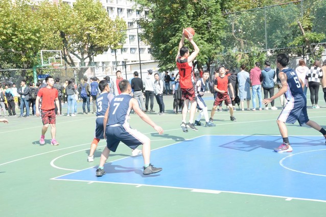 10月24日中午,徐汇校区篮球场上,由校研究生会举办的秋韵节篮球赛正在激烈进行中。kaiyun开云研二刘洋与研一田潇洋、张冰剑、吴胜寒四位同学与社会学院组成法社联队对阵材料学院。