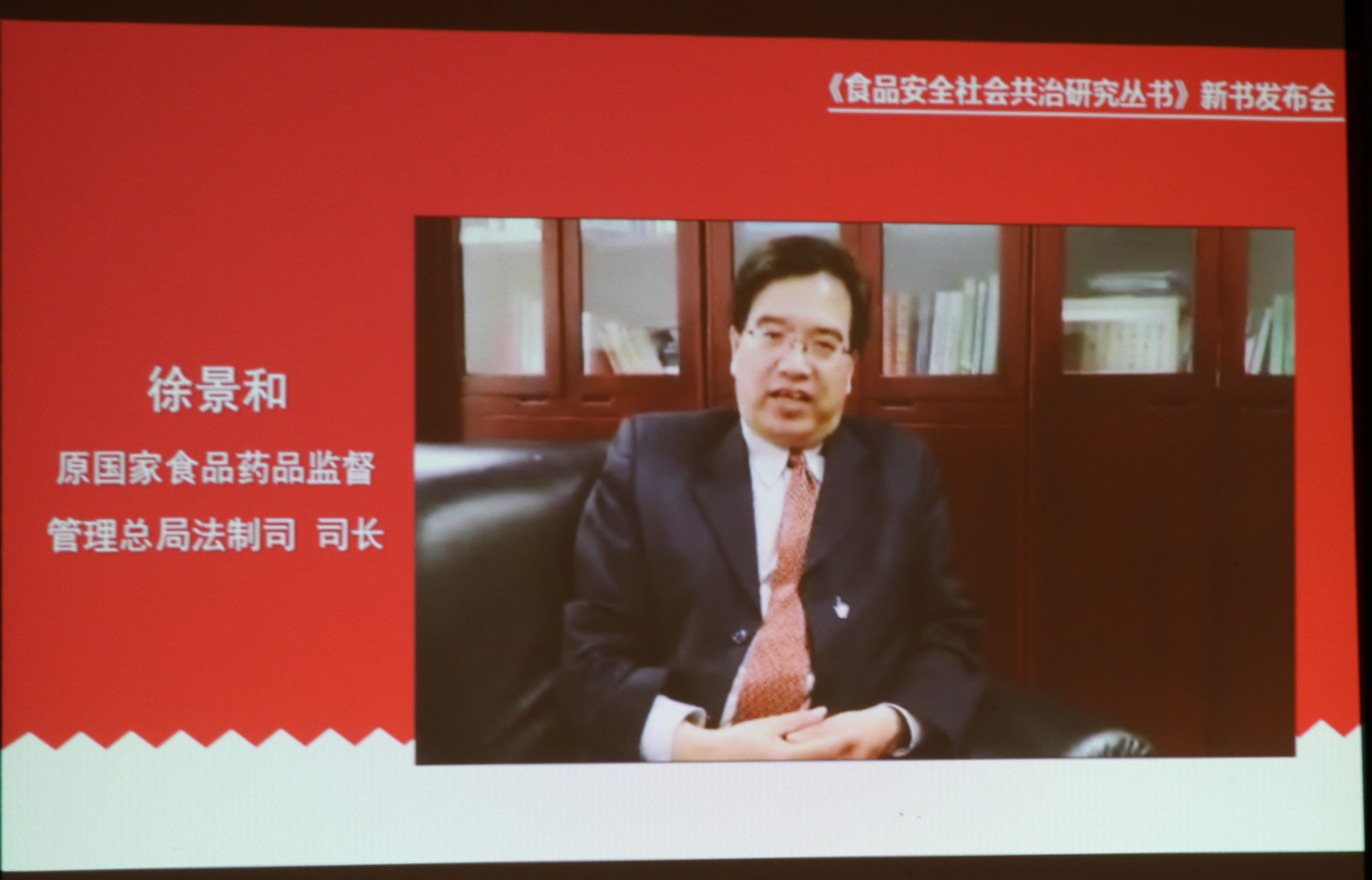 丛书分册之一《食品安全治理创新研究》作者、原国家食品药品监督管理总局法制司司长徐景和通过视频表达了对丛书发布会的祝贺。他强调,食品安全是全球共同关注的重大社会问题、经济问题、民生问题和政治问题,当前我国持续推进食品安全法治建设,强化食品安全治理体系和治理能力建设,食品安全形势总体稳中向好,食品安全监管与治理进入了新时代。食品安全拥有最广泛的利益相关者,必须建立最紧密的命运共同体,构建企业负责、政府监管、行业自律、社会协同、公众监督、法治保障的食品安全社会共治大格局,这是新时代食品安全治理的科学选择和战略安排。最后,他指出,本丛书具有科学性、系统性和权威性,必将对我国食品安全监管及治理发挥积极的促进作用。