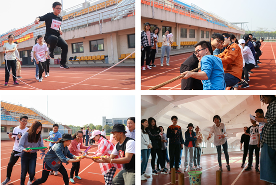 本次运动会的比赛项目丰富多彩,“龙飞凤舞”、“百发百中”、“珠行万里”、“齐心协力”,一个个趣味小游戏既考验体育技能,又考验着师生间的团队合作能力。全体参赛队员被随机分成8个参赛小组,每一支参赛队伍都是由老师和大一大二大三学生搭配组成。随着比赛进行,各组渐渐熟悉,配合也逐渐默契,师生们一起感受青春活力,共同向同一个目标而努力。