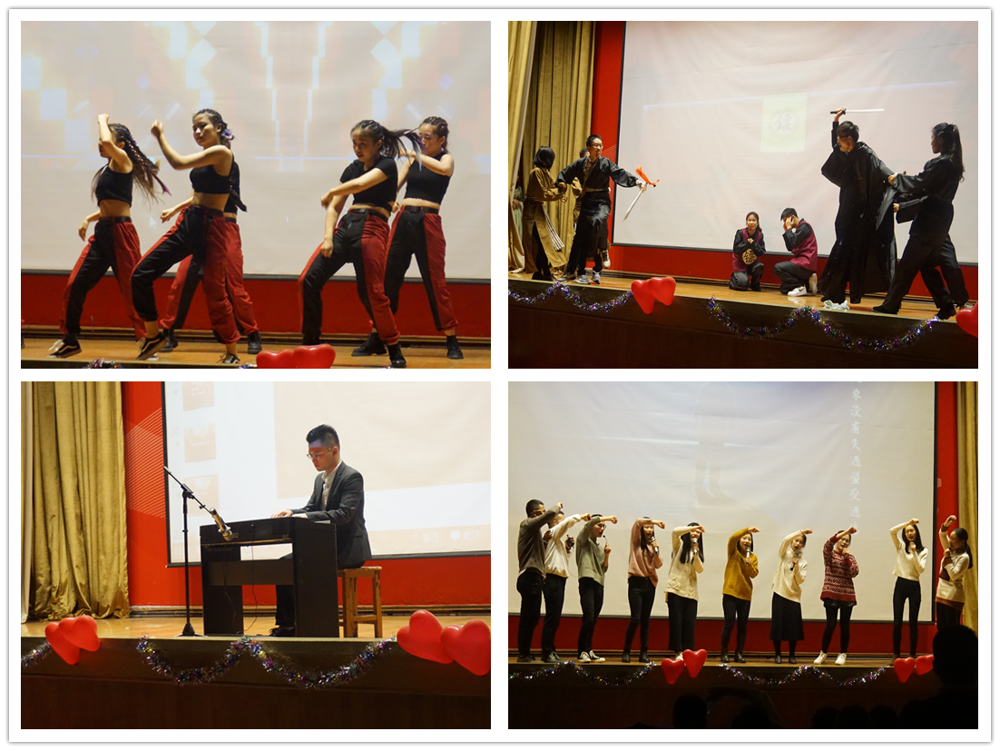 晚会在舞蹈《抖音BGM合集》中拉开序幕,绚丽的灯光下舞者们活力四射的表演为晚会营造了热烈的气氛。歌舞、小品、舞台剧等精彩节目为观众呈现了丰富的视听盛宴。歌曲《岁月神偷》如灵音贯耳,直达心底。街舞《TOXIC》表演,舞姿轻捷矫健赢得掌声不断。kaiyun开云官方研究生自编、自导、自演的小品《镖师》的幽默桥段引得观众捧腹大笑,用幽默而又不失端庄的方式弘扬了我校的校训。