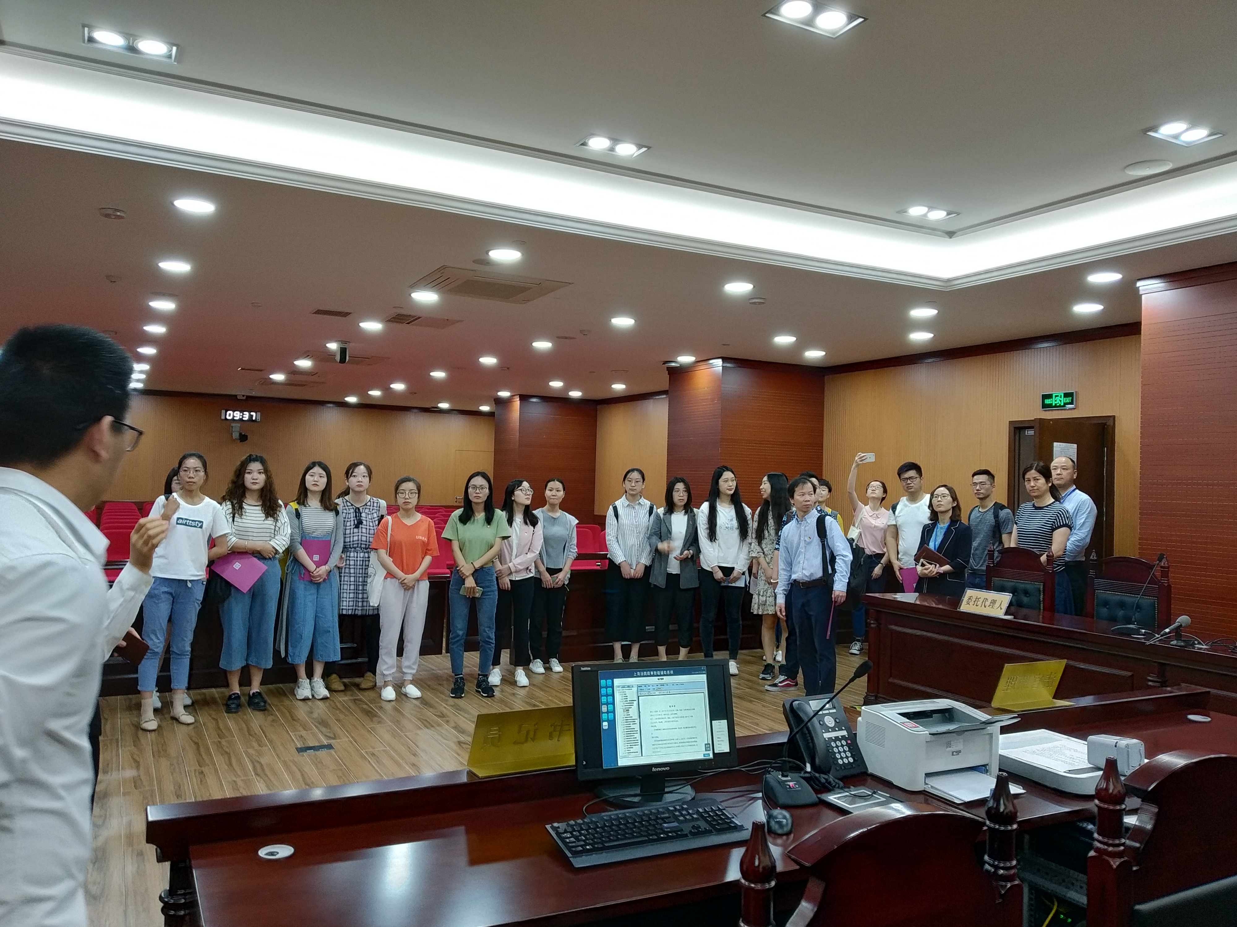 铁路法院工作人员向kaiyun开云师生介绍了法院在司法改革背景下的最新发展成就,包括软硬件建设、审判管理和队伍建设等。在工作人员的引导下,同学们陆续参观了自助智慧立案设备,云柜以及各个有特色的审判庭,包括可以互联网远程开庭的审判庭,可以实现法院、检察院与看守所三地实时连线进行庭审的审判庭等等。随后,大家一同观看了纪实宣传片:“智慧法院建设进行时”。参观过程中大家切实感受到智慧法院建设和人工智能的运用给司法程序带来了极大便利。