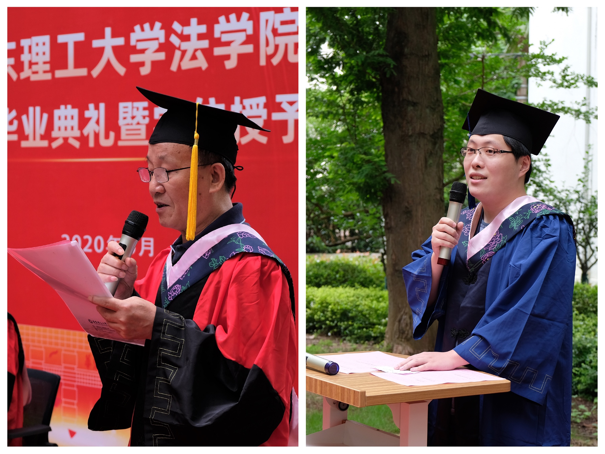 刘金祥教授作为导师代表发言,本月即将退休的他表达了即将离开校园的不舍,同时为同学们的成长成才感到自豪,并祝福毕业生在人生浪潮中乘风破浪、勇往直前。毕业生代表法律(非法学)硕士戴峻回忆了在华理三年的成长,表达了对母校和老师们衷心的感谢,表示会始终践行“勤奋求实,励志明德”的华理精神,牢记师长教诲和母校嘱托,心怀正义,永葆真心,书写出人生的壮丽篇章