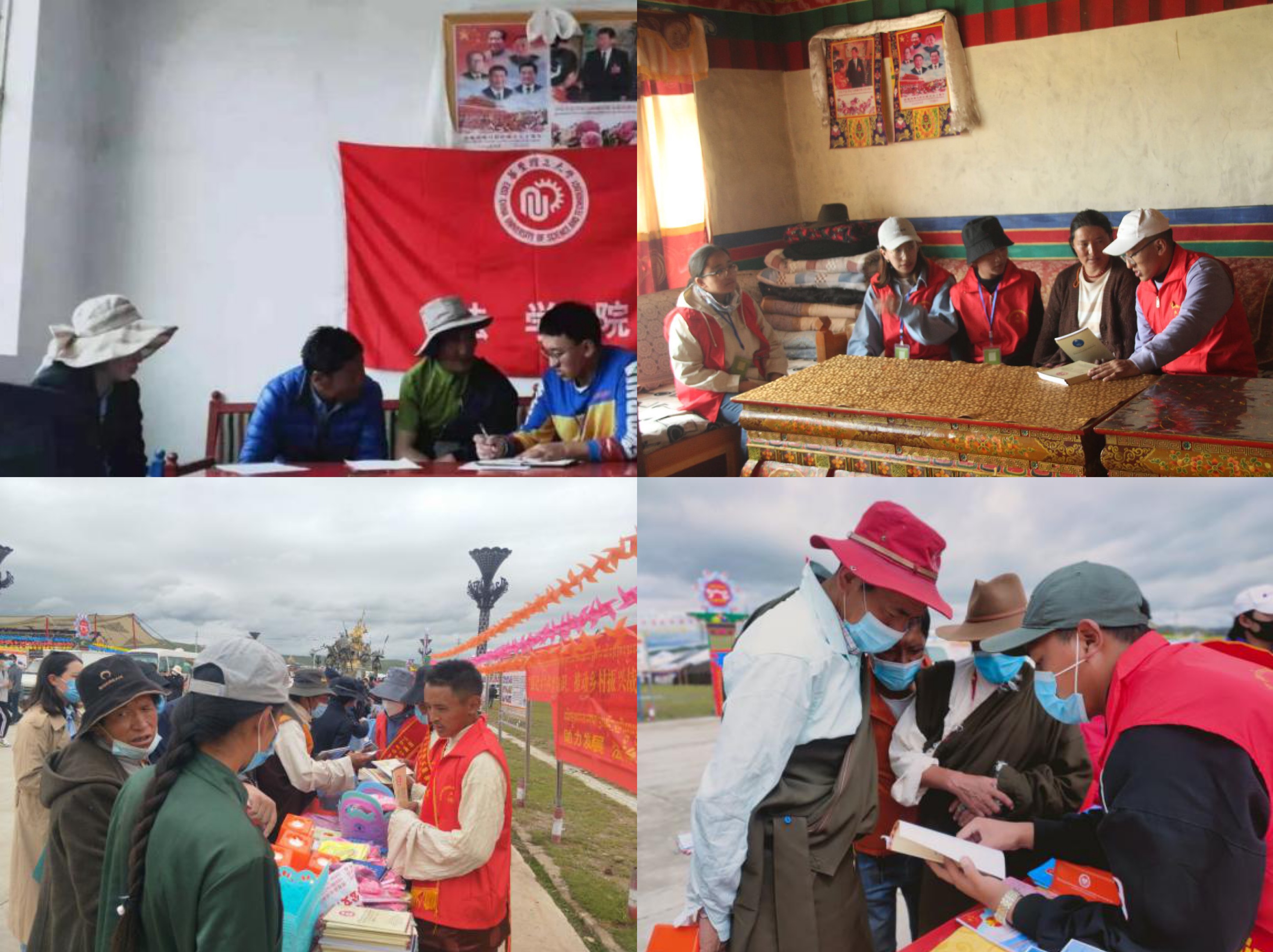 8月,实践团队在那曲羌塘恰青赛马节开展以节日为契机的大型普法宣传活动。实践团队收录农牧区群众常见的法律知识,精心制作汉藏双语宣传册,将法律知识以通俗易懂的语言巧妙地融入到宣传册中,充分利用当地民族文化元素,向参加赛马节的农牧民群众科普法律知识。本次活动中,累计参与宣讲的村民达数千名,实践团队共发放藏汉双语《民法典》、《社区矫正法》、《禁毒法》、《未成年人保护法》等宣传册2000多份,深受当地群众的好评。