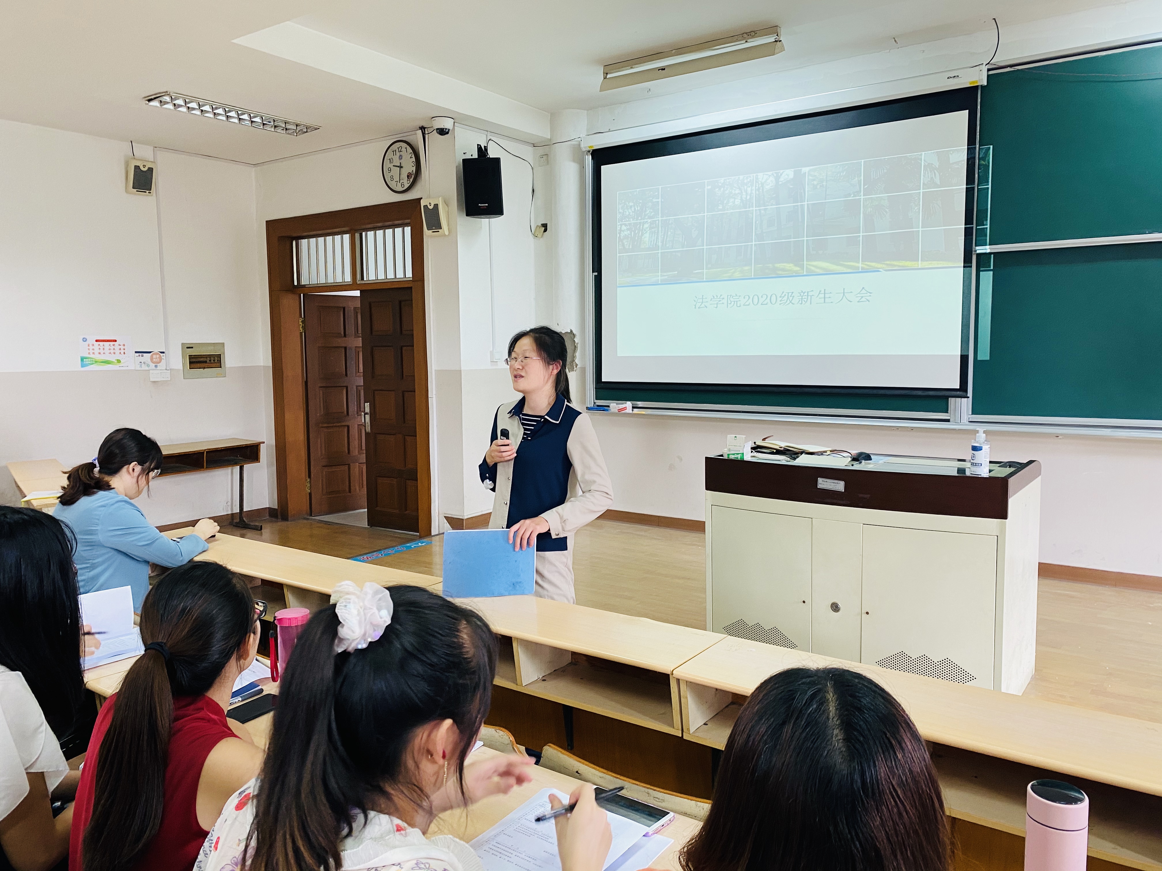 李思杭带读学生手册,详细说明学校管理规定中的奖惩、请假休学、成绩考核等相关内容,让同学们了解何为研究生学习阶段的“红线”,何为优秀学生的“标准”。与此同时,她从增进人际关系和安全教育两个角度提了建议和要求。会上选举产生了2020级研究生新生班级干部,新一届的班级负责人和心理委员表示将竭诚为同学们服务。