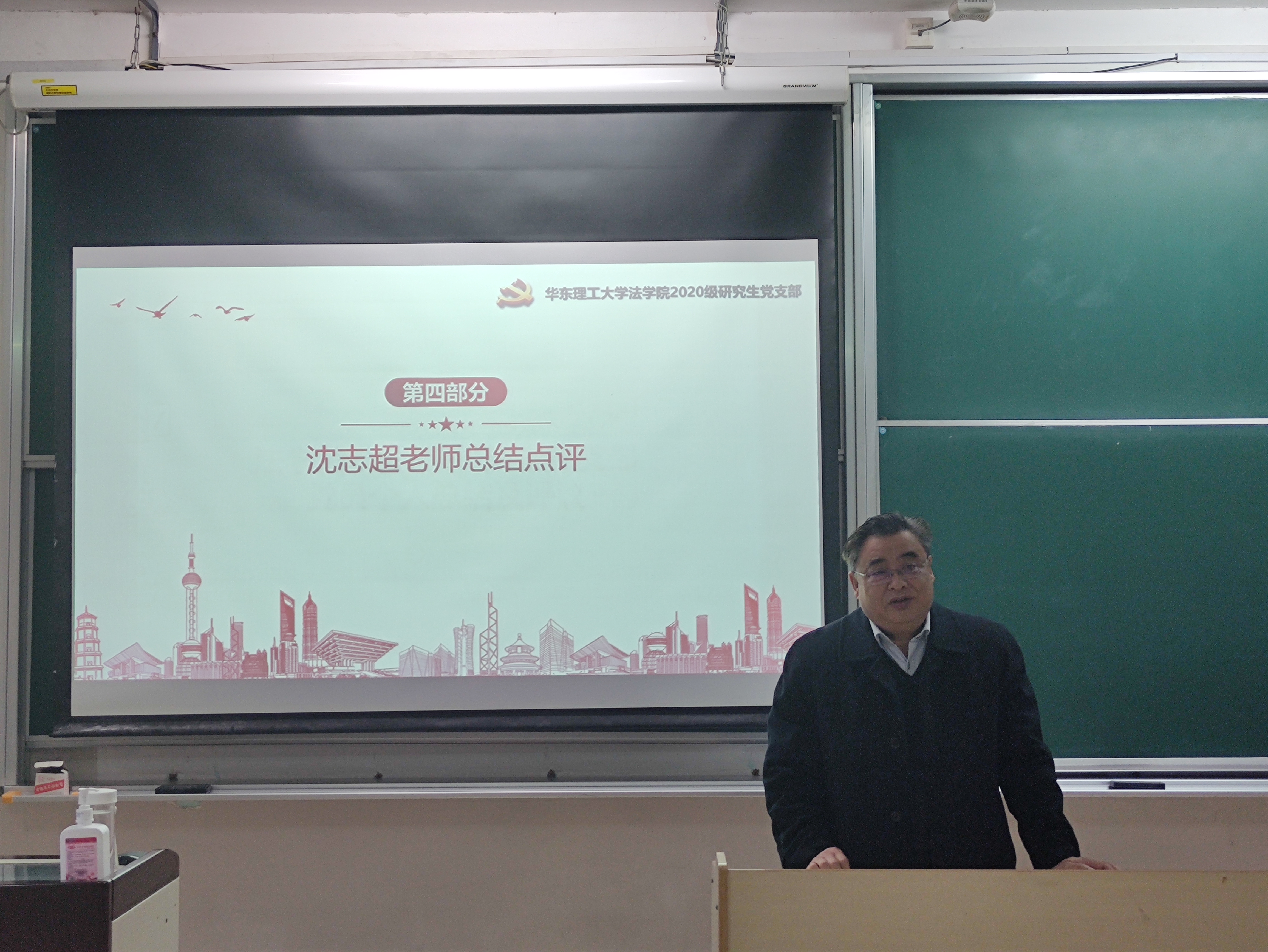 沈志超在点评中肯定了支部成立以来所做的各项工作,并提出了指导意见,对支部下一阶段的工作提出了3点期望,首先是要坚持从党员标准出发,始终明确“学什么、怎么学、为谁学”;其次是要加强习近平新时代中国特色社会主义思想的学习,特别是习近平教育思想和法治思想的学习研究;最后是要充分发挥党支部战斗堡垒作用和党员的先锋模范作用,要注意密切联系群众,坚持为身边师生服务。