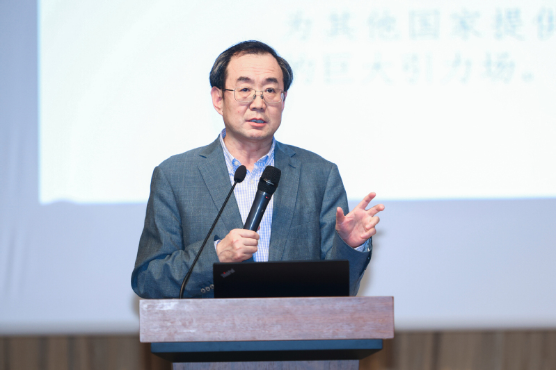 上海社会科学院研究员、党委书记权衡以“双循环新发展格局:理解中国与世界经济关系的新定位”为题发表主旨演讲。他指出,当前中国和世界的关系,特别是经济层面、国际关系层面发生了深刻的改革,从单一的商品开放慢慢向世界经济舞台的中心靠近,取得了巨大的成就。新发展格局的重要意义在于,为中国经济发展开辟空间的同时,也为世界经济复苏和增长增添动力。他强调,未来我们应当继续坚持高水平开放,以中国的增长推动世界经济增长,同时以世界经济的增长、外部市场的开放对国内改革的深化起到带动作用。