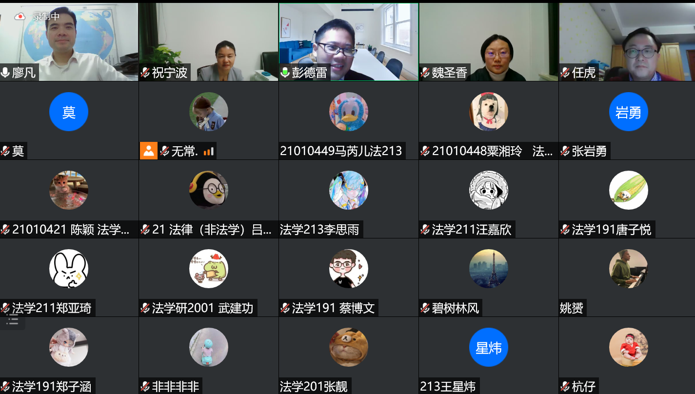 在嘉宾点评中,几位与谈人表达自己的真知灼见,对“长臂管辖”问题进行了热烈的讨论。祝宁波副教授就“长臂管辖”的泛化和中国应对效果与廖教授展开深入探讨。魏圣香副教授结合当前实际,探讨提出中国应当建立自身富有特色的域外管辖法律体系。在如何建立更广义的国内法域外适用上,廖凡教授进一步指出中国要找好支点,找准自身核心利益。任虎副教授、刘慧博士则从国际法适用、海外反腐败等视角分享了对“长臂管辖”的理解。在答疑环节,同学们就制裁与反制裁的发展动态、中国申请加入《全面与进步跨太平洋伙伴关系协定》等与参会嘉宾进行了互动交流。