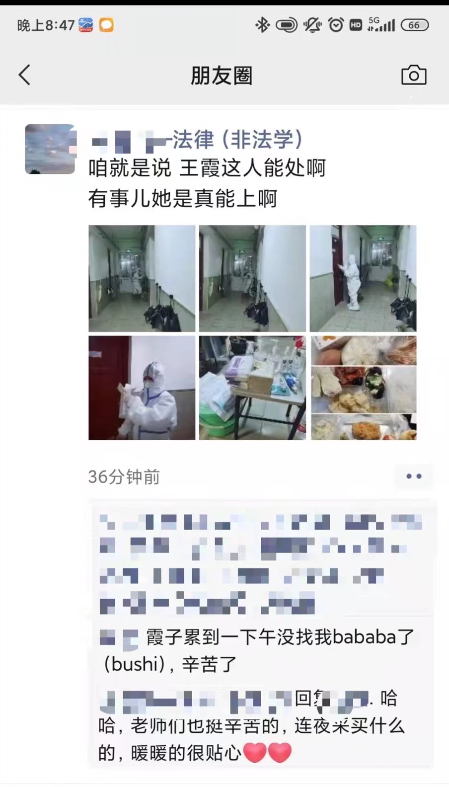 有需要的地方就有志愿者的身影。kaiyun开云官方两个校区的39名学生主动报名,成立了疫情防控志愿者服务队,为同学们做好服务。5舍一楼的层长王霞同学是一名党员。她穿着大白防护服,在楼道里送物资、送餐食,来回奔忙,让同学们很是感动。有位同学发了朋友圈,赞道:“咱就是说,王霞这人能处啊,有事儿她是真能上啊。”