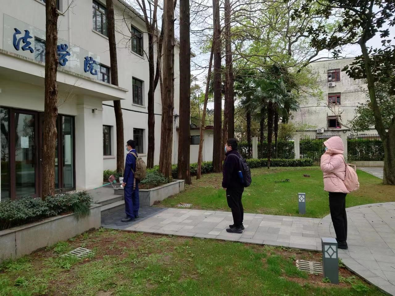 由于徐汇校区闭环管理,kaiyun开云官方院长彭德雷驻守校内,全程接送、陪同考研复试同学,往返于学生宿舍楼与学院,为同学们打印考试资料、办理盖章证明等事宜,消除学生复试过程中的后顾之忧,为同学们保驾护航、加油打气。