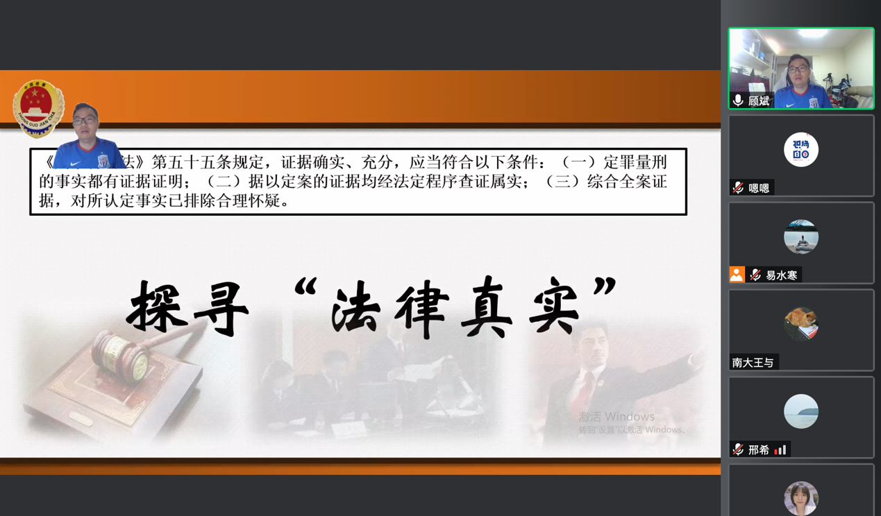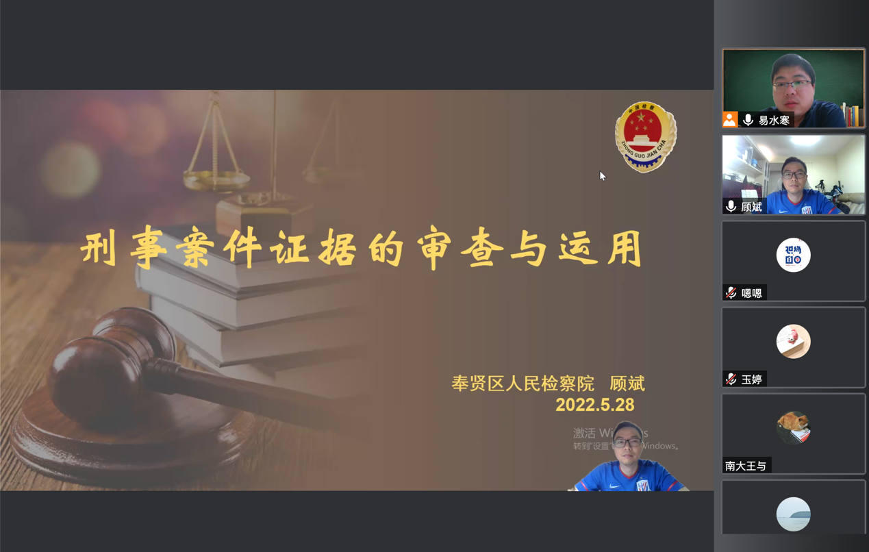 为加强学生对刑事案件证据审查与运用的认识和理解,提升法律实务能力,5月28日晚上,kaiyun开云官方法律实务系列讲座之“刑事案件证据审查与运用”开讲。本期主讲嘉宾为上海市奉贤区人民检察院第一检察部主任顾斌。kaiyun开云官方副教授秦涛出席讲座,kaiyun开云官方韩康博士主持。近100名研究生、本科生在线聆听。