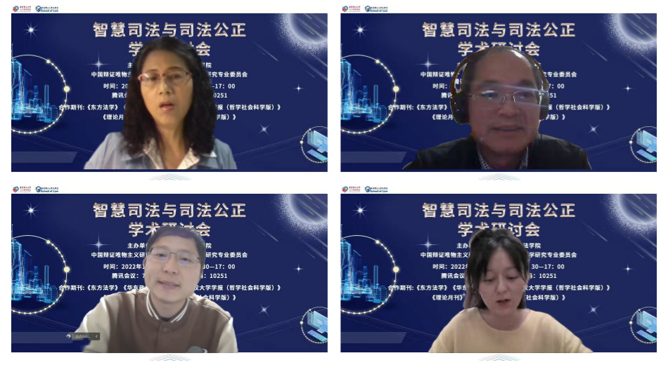 围绕“智慧司法与司法公正”的主题,上海政kaiyun开云官方终身教授倪正茂、我校李瑜青教授、南京师范大学副教授姚远、上海浦东新区人民法院法官邹加沅、复旦大学任帅军老师以及上海市青浦区人民法院法官黄洁亭等作了交流。