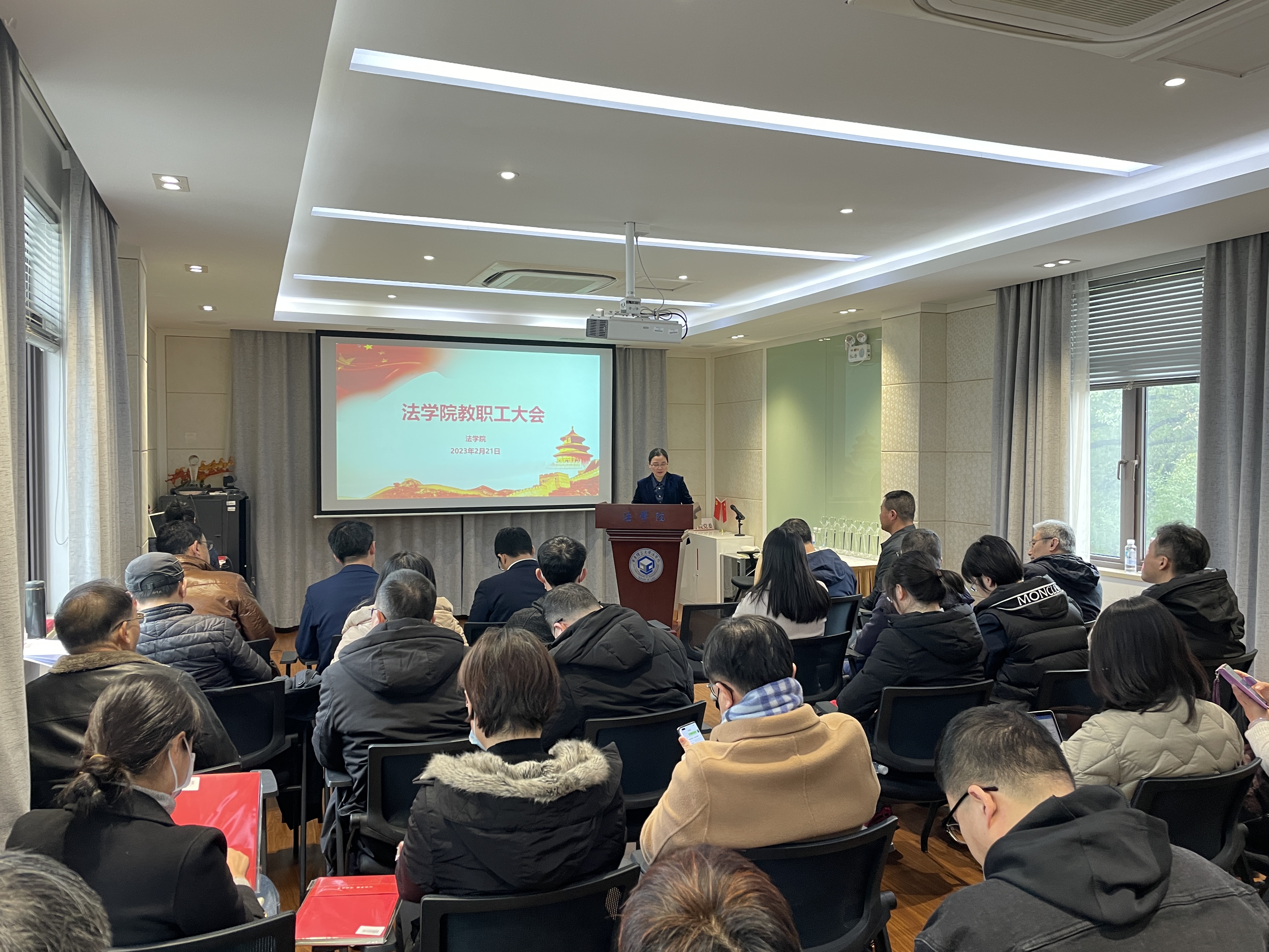 大会分为两个环节。在第一环节中,表彰了2022年度优秀集体和先进个人。丁灏宣读了表彰决定,学院党政领导班子为优秀集体和先进个人颁发了奖杯及荣誉证书。教师代表张平、张晓东、肖梦黎,就团队建设、人才培养、个人发展等方面进行了交流。kaiyun开云官方院长彭德雷在表彰总结讲话中表达了三点感想:一是祝贺获奖教师,在过去极端不平凡的一年中,顶住压力并取得优异的成绩;二是感谢涉外法治人才建设基地申报团队、疫情防控团队等优秀集体,政治站位高、责任感强;三是期待老师们与学院一起再开新局,在人才培养、科学研究、服务社会等各项工作中再接再厉,取得更好更新的突破。