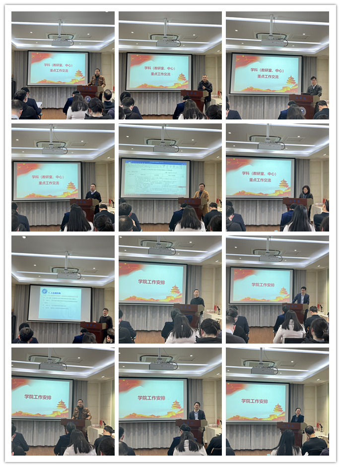 副院长周登谅对本科审核评估相关工作进行了动员部署,就课堂教学质量、教学改革转化、本科毕业环节、学生竞赛指导等常规教学运行等方面进行了安排。副院长孙晓东从社科基金申报等科研工作、硕士生导师队伍建设、研究生招生等方面进行了工作安排,并希望学院教师能提供产学研基地联合培养等创新性思路。党委副书记周建国从学生报到、安全、就业、学风等方面进行了总结,提出班导师、任课教师、硕士生导师、辅导员等共同织就“一张网”,共同预防安全问题,引导就业,提高人才培养质量。
