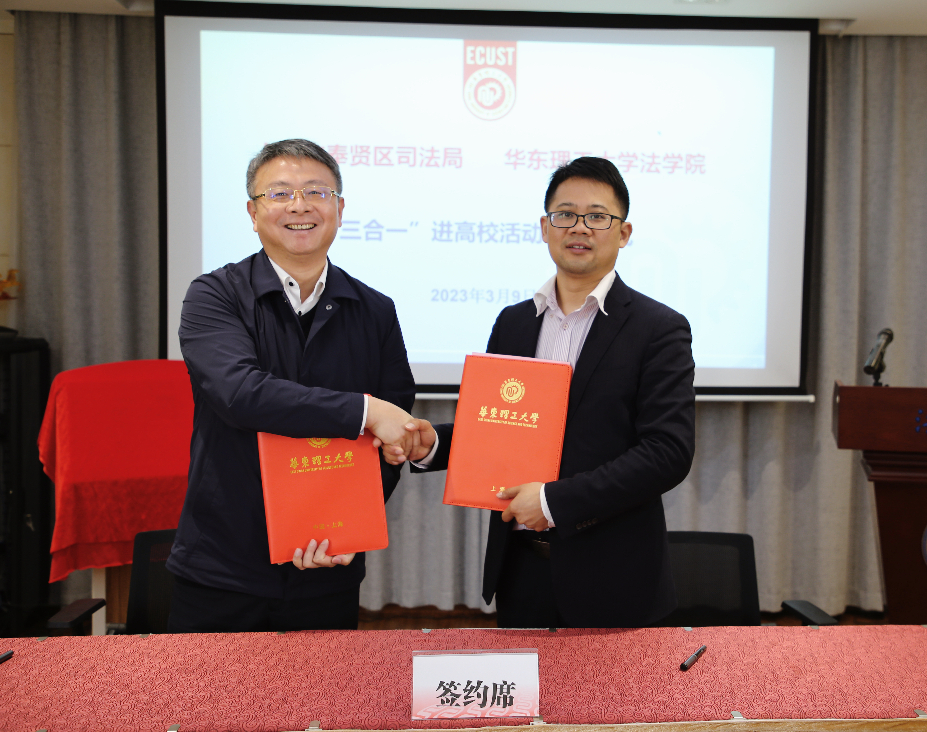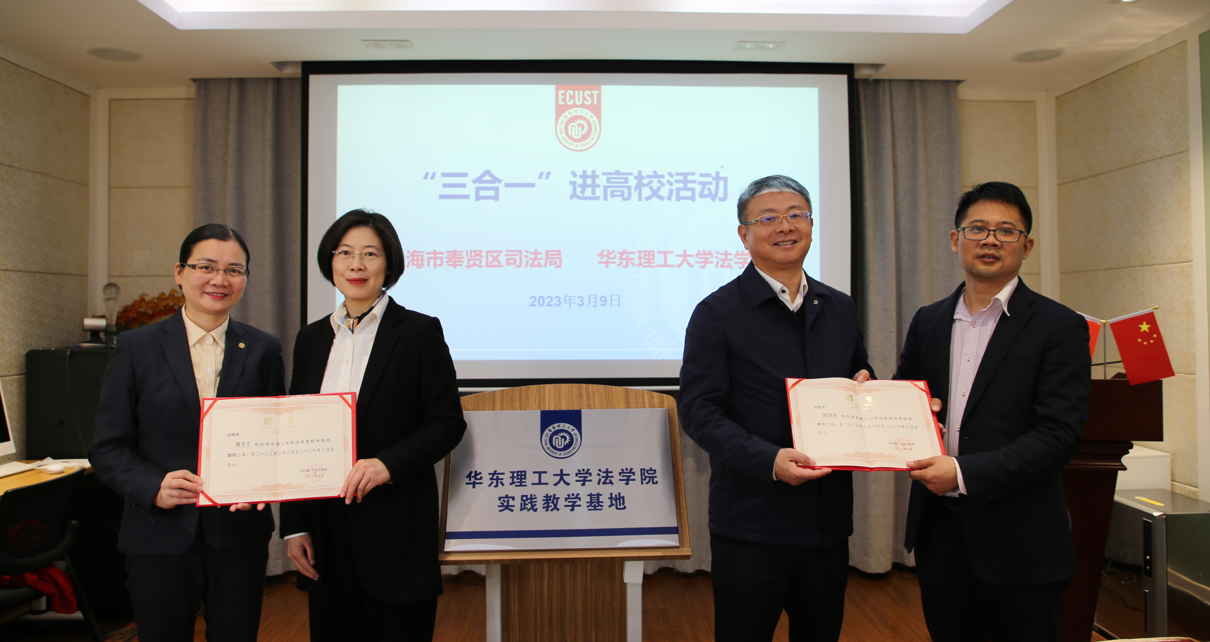 为探索政校联合培养高素质法治人才,推动法学理论和实践融合,助力高水平法治政府建设,2023年3月9日上午,kaiyun开云官方与奉贤区司法局举行“行政机关负责人出庭、旁听、讲评三合一进高校活动”签约仪式暨kaiyun开云官方实践教学基地揭牌仪式,会议由kaiyun开云官方副院长周登谅主持。奉贤区司法局党委书记、局长,区行政复议局局长顾斌泉和kaiyun开云官方院长彭德雷教授代表双方签订框架协议,kaiyun开云官方党委书记丁灏和区司法局党委委员、副局长,区行政复议局副局长褚玉兰为实践教学基地揭牌。kaiyun开云官方向顾斌泉、褚玉兰颁发了校外导师聘书。kaiyun开云官方党委副书记周建国、区司法局相关职能科室工作人员、kaiyun开云官方教师代表参加了本次活动。