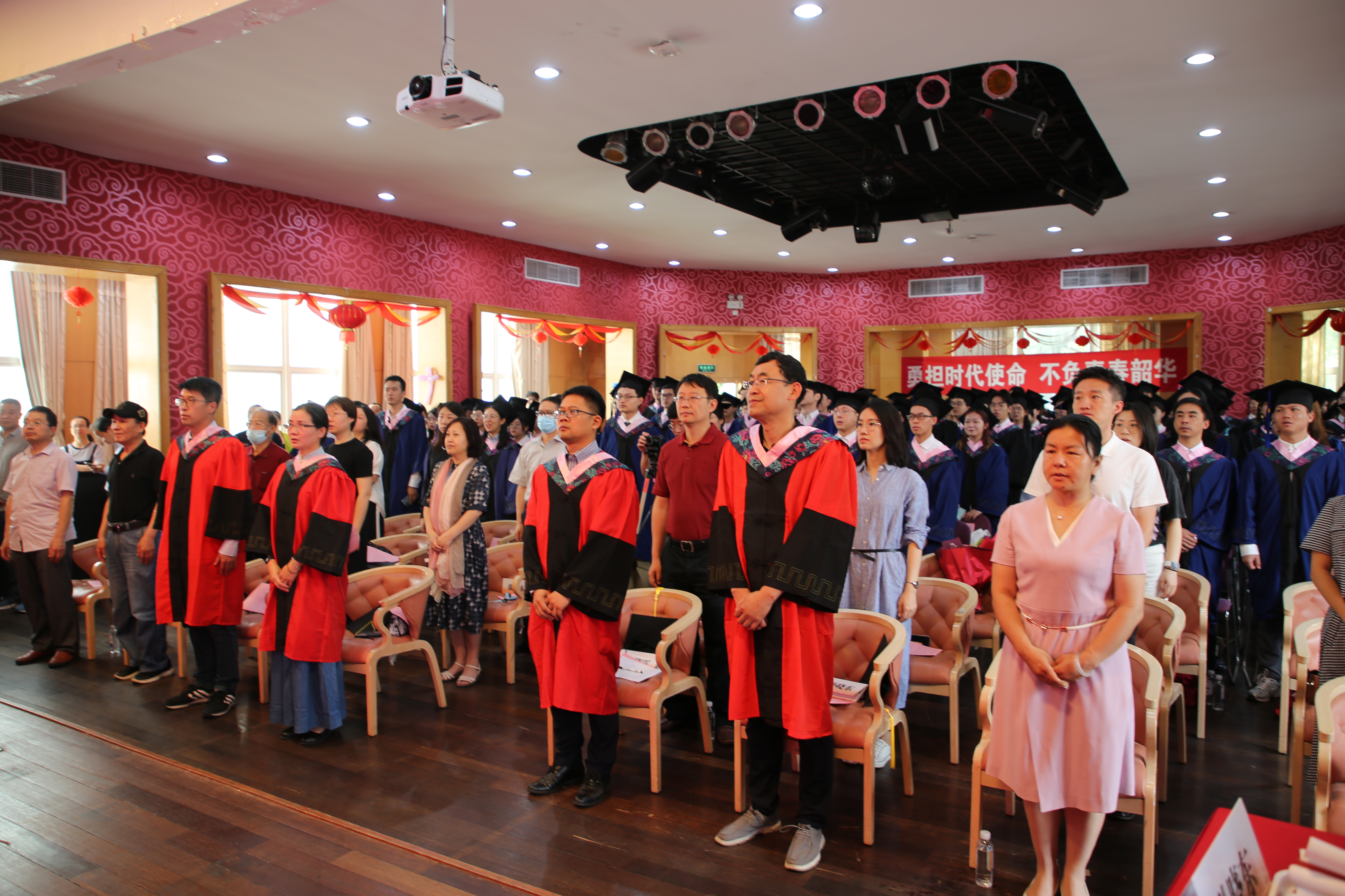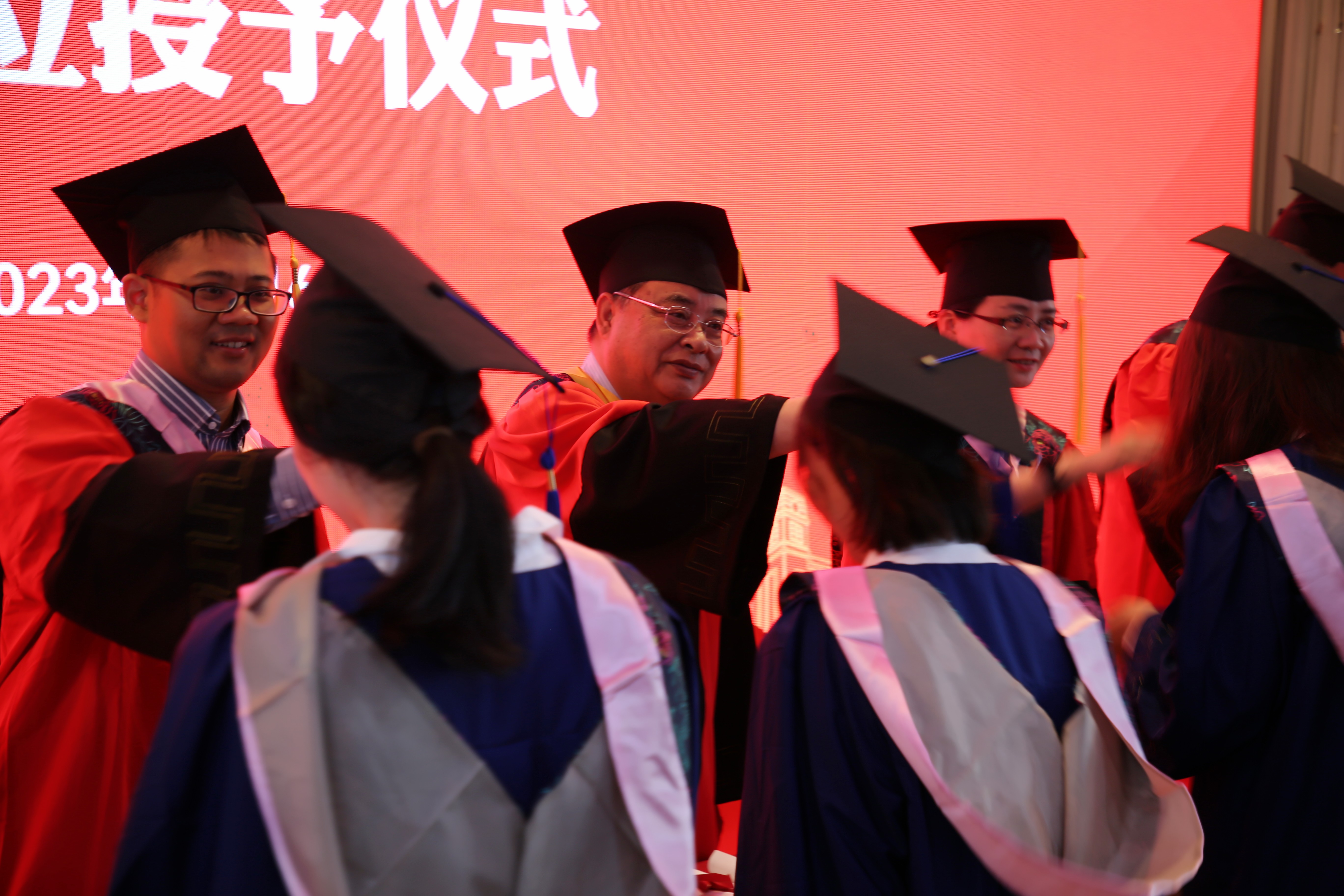 校长轩福贞以“静心行远,做新征程上的奋斗者”为题为毕业生送上殷切嘱托。全体毕业生宣读毕业誓词,宣誓自己将继续践行“勤奋求实、励志明德”的校训。随后,校、院领导为毕业生一一拨穗正冠,并赠送毕业纪念卷轴。