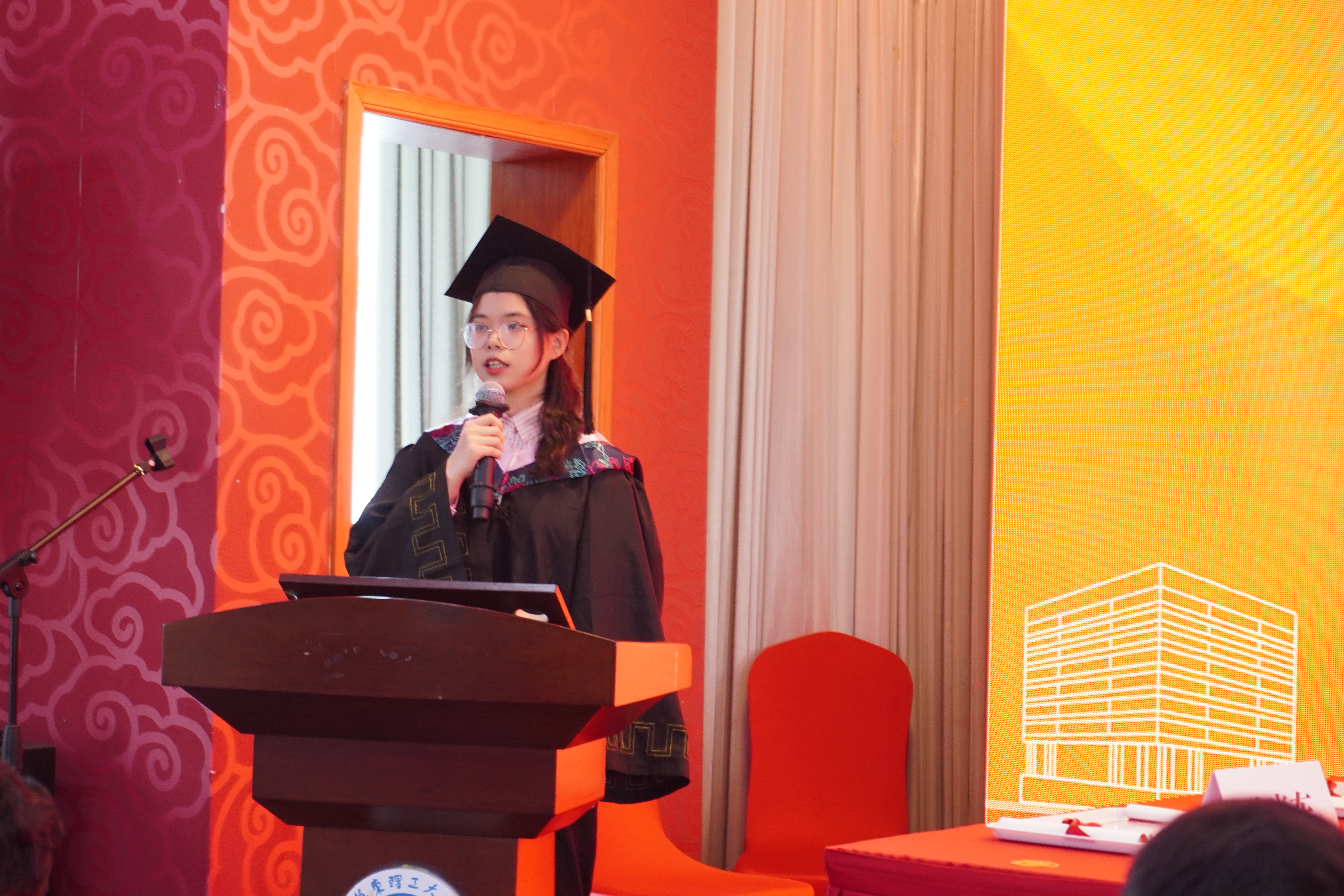 法学192班班导师、硕士研究生导师王籍慧作为教师代表发言,向所有毕业生送上真诚的祝福,并向同学们提出三点建议:第一,要保持自信,行动起来;第二,不要麻木,保持好奇心;第三,永远不要丧失独立思考的能力。她祝愿同学们此去鹏程万里,前程似锦;不负韶华,继续书写下一阶段的美好人生。