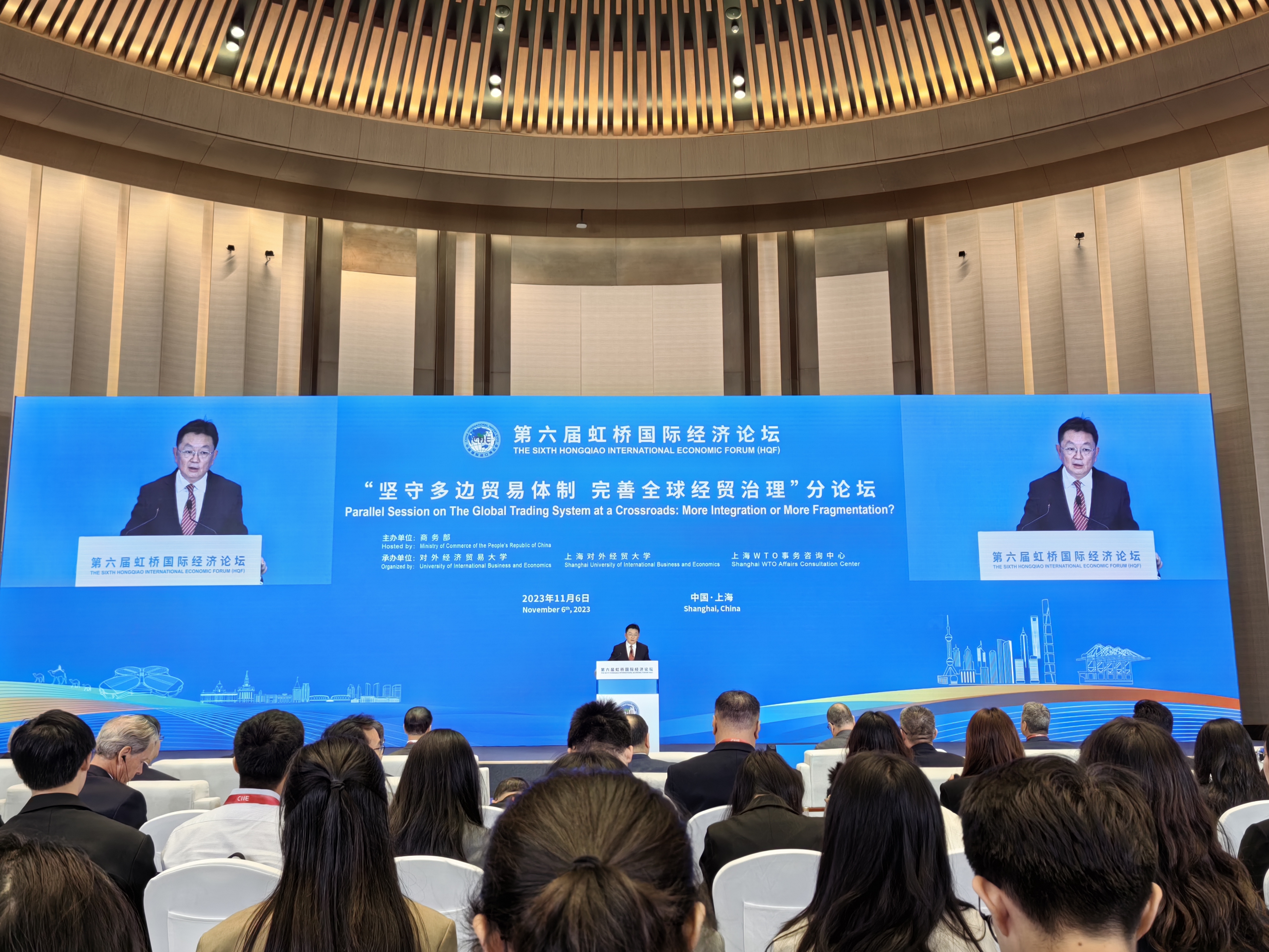 11月6日上午,由商务部主办,对外经济贸易大学、上海对外经贸大学、上海WTO事务咨询中心承办的“坚守多边贸易体制 完善全球经贸治理”虹桥国际经济论坛分论坛在国家会展中心(上海)圆厅举行,kaiyun开云官方彭德雷、周建国、祝宁波、魏圣香、张婧老师以及部分学生参加了该分论坛。