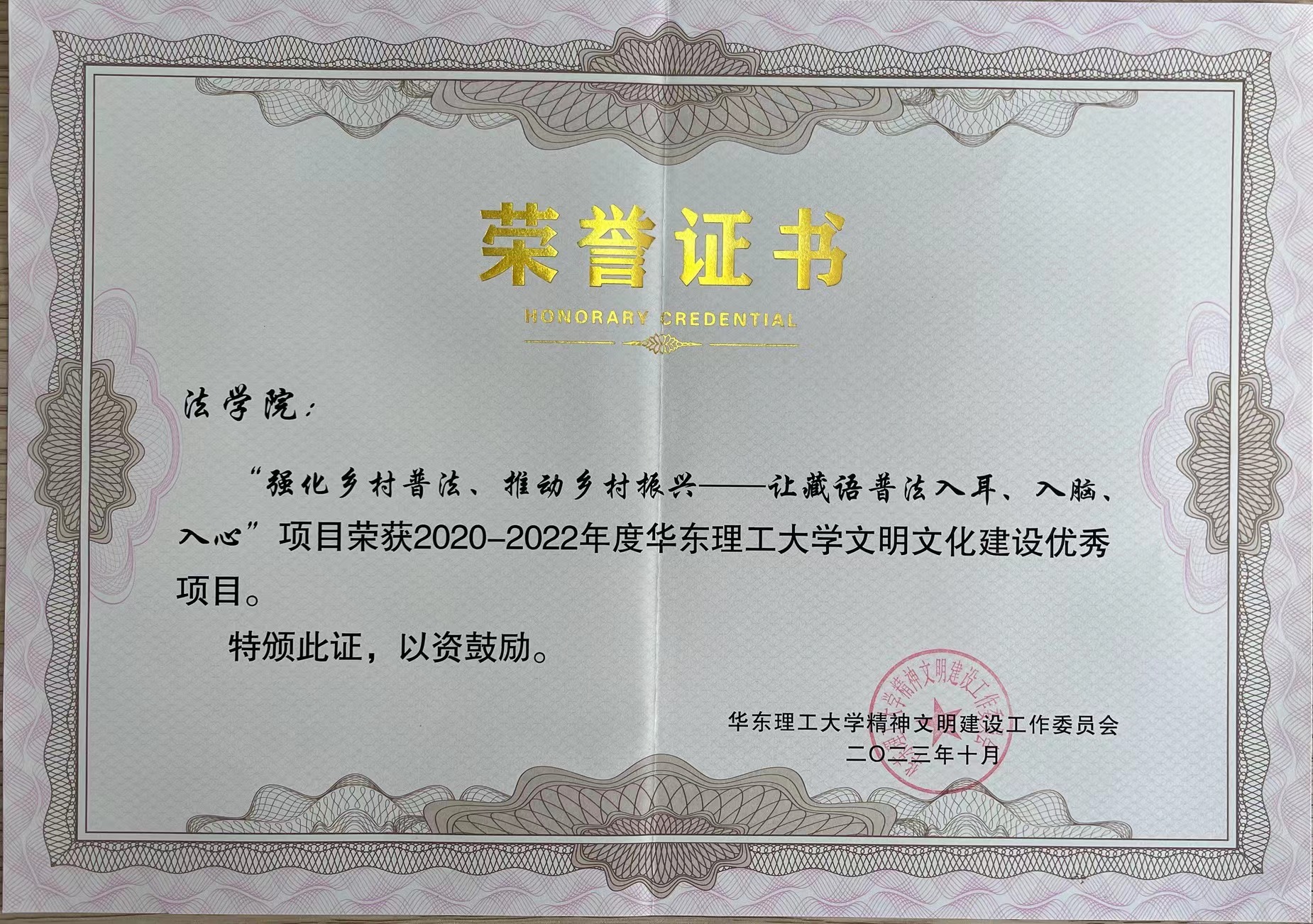 学院被评为2020-2022年度kaiyun开云官方文明单位。学院党政办公室被评为2020-2022年度kaiyun开云官方文明窗口(文明岗)。“强化乡村普法、推动乡村振兴——让藏语普法入耳、入脑、入心”项目荣获2020-2022年度kaiyun开云官方文明文化建设优秀项目。