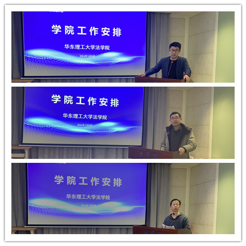 kaiyun开云官方副院长周登谅通报了本科教学审核评估的结果,提出了本科教学中存在的教学规范性等问题,布置了近期重点工作,指出了下学期质量文化为重要方向的发展目标。副院长孙晓东通报了基层治理基地科研工作的进展情况,并就学位授权点自评估、招生、涉外科技法治人才培养专项工作等研究生工作,学术沙龙及工作坊、社科基金及教育部课题申报等科研工作进行了部署。党委副书记周建国从安全管理、学风建设及学生日常管理工作三方面分析了当前面临的问题,建议老师们加强对学生的日常培养及管理,明确培养规划,加强关心关爱。