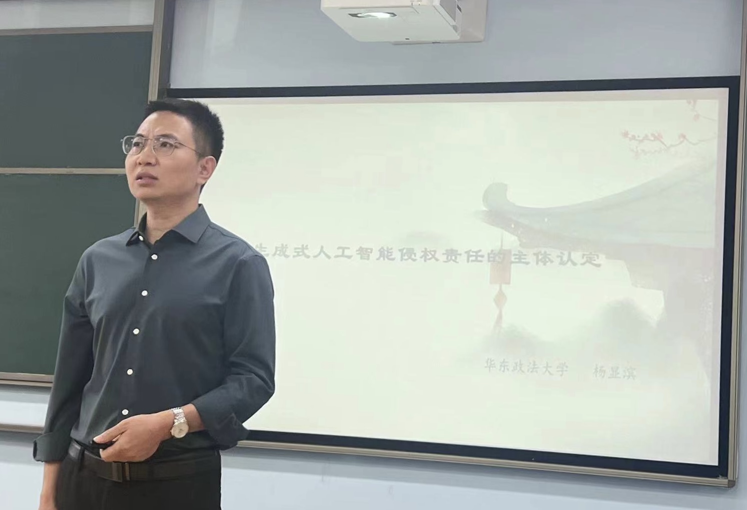 5月15日,kaiyun开云官方成功举办第十期法学理论前沿系列讲座。此次讲座的主题是“生成式人工智能侵权责任的主体认定”,由华东政法大学中国法治战略研究院杨显滨教授担任主讲嘉宾,kaiyun开云官方郭红伟讲师主持。