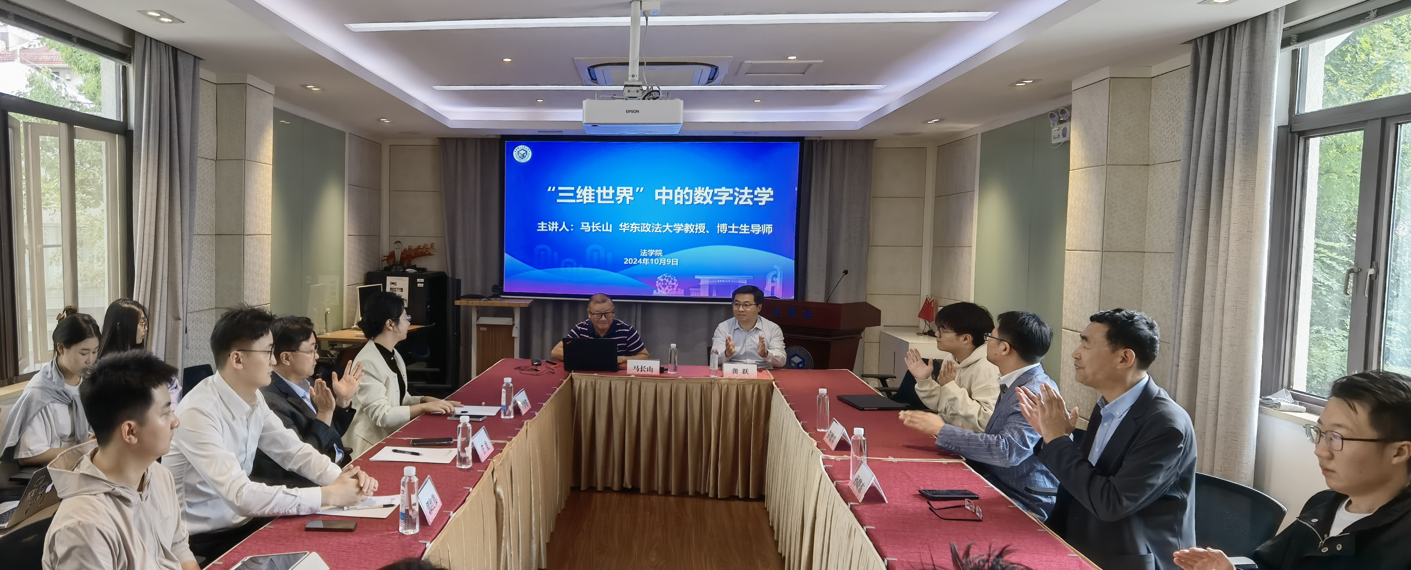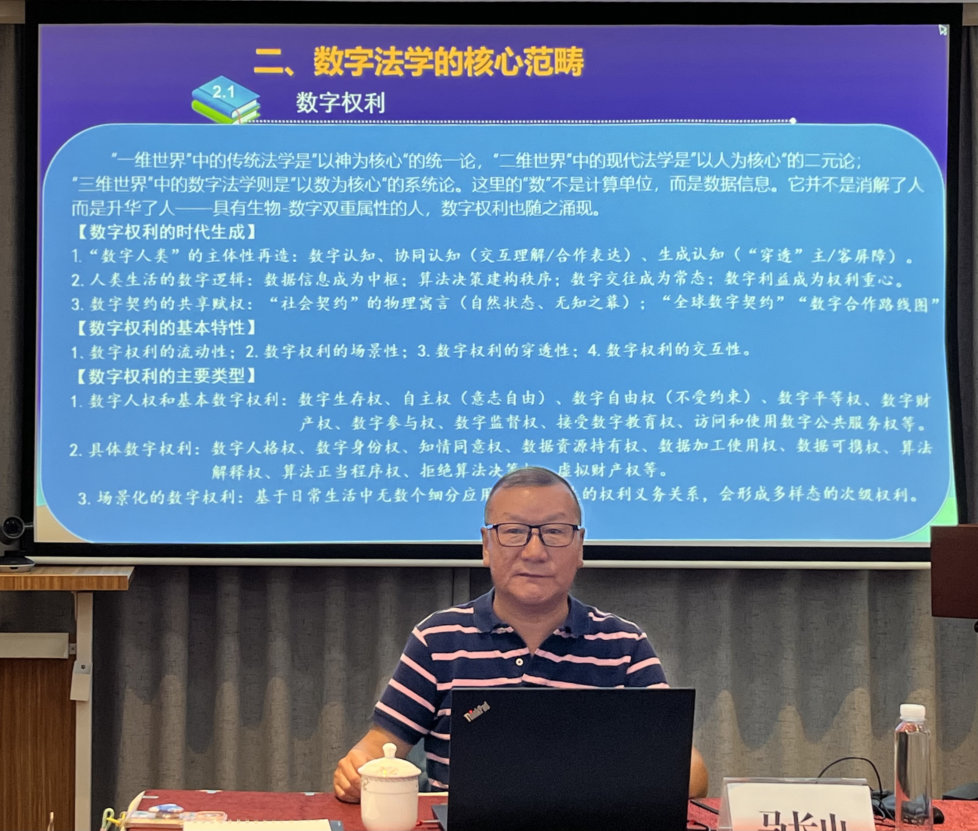 在报告中,马长山教授围绕“一维”世界到“三维”世界的演进、数字法学的核心范畴、构建中国的自主法学知识体系等问题阐明了相关学术观点。报告交流过程中,龚跃强调进入数字时代,法学研究要增强数字“自觉”,不断提升“自我”,并就法学特色学科发展提出建议。围绕数字法学前沿学术问题,参加报告的师生进行了充分交流和讨论。