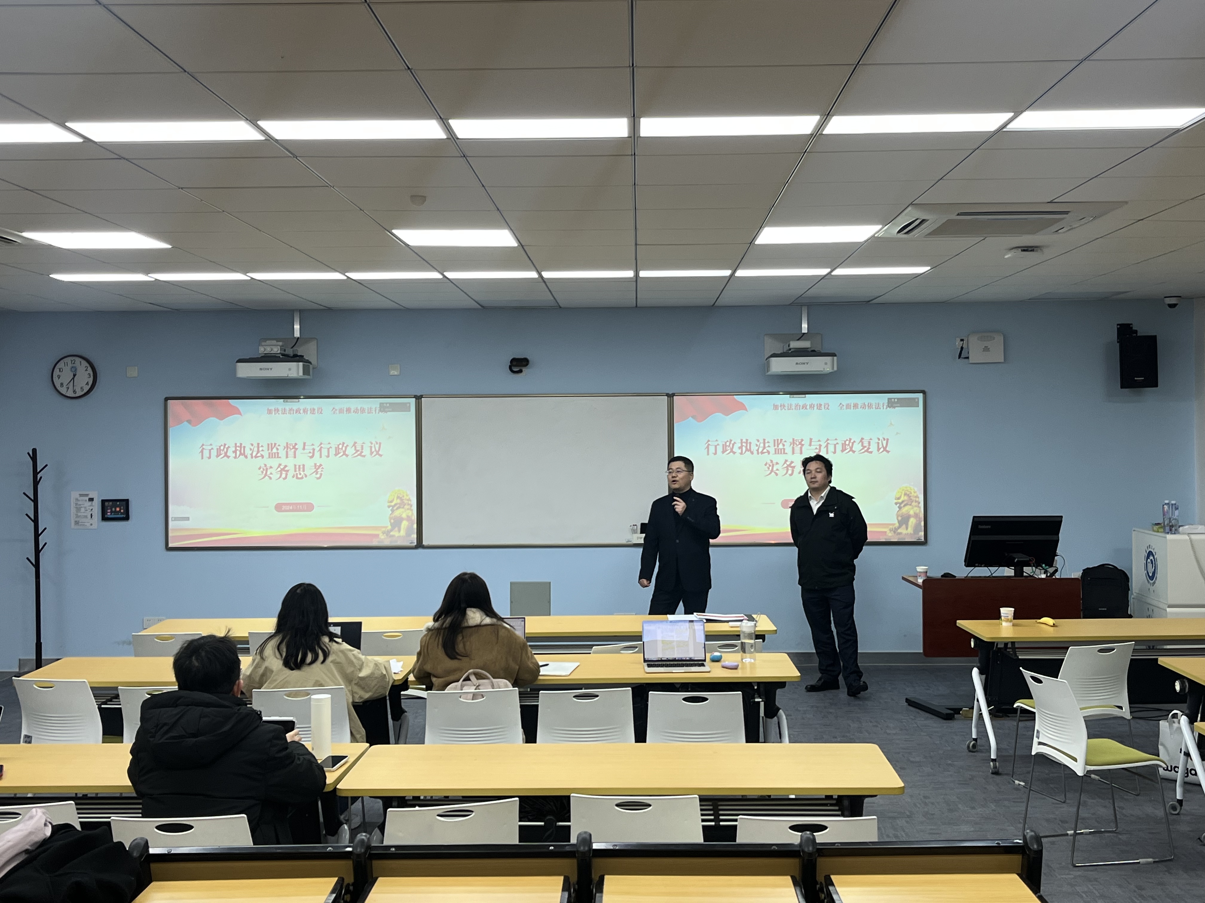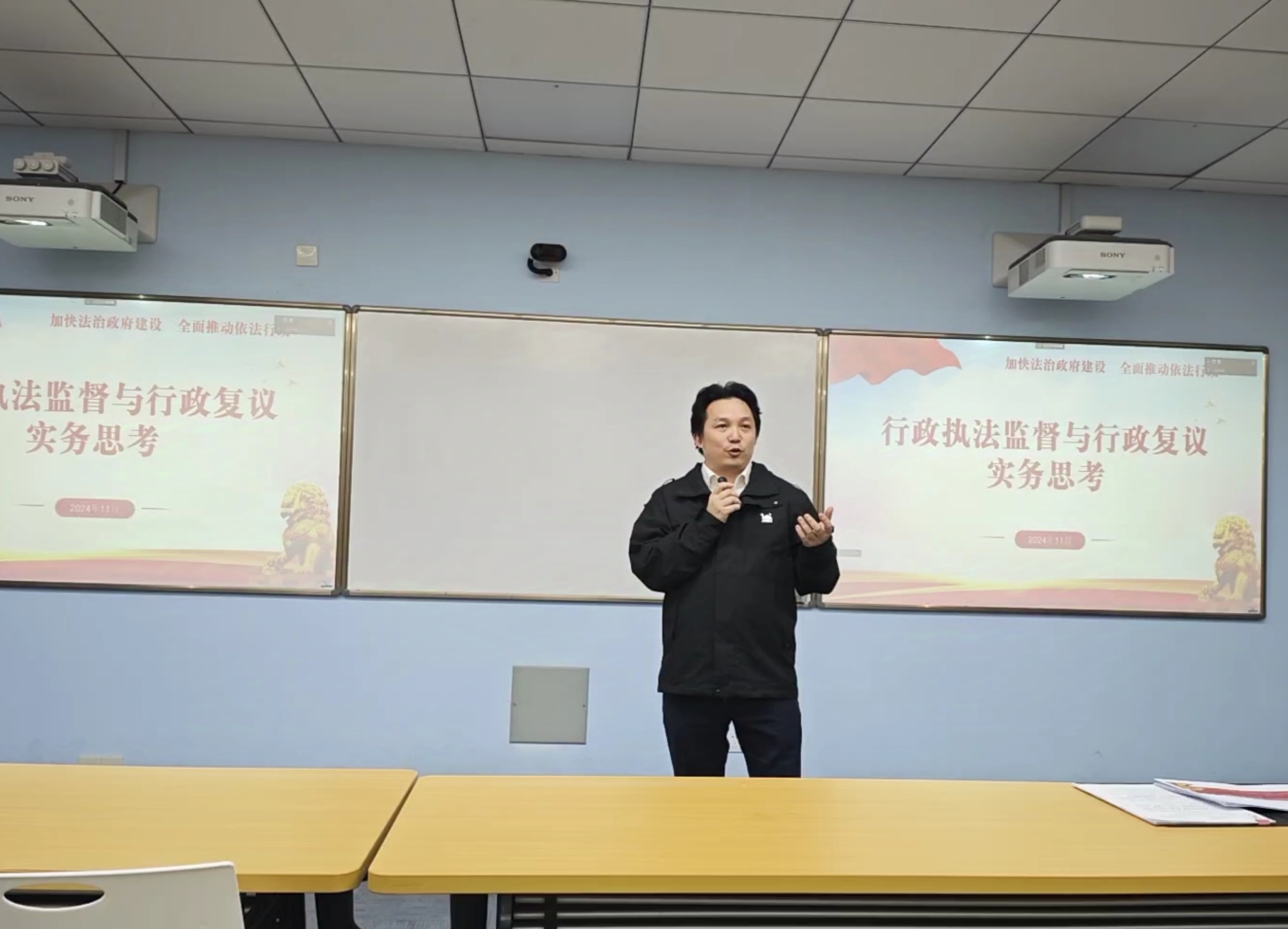 在报告环节,王湛雷局长围绕《行政复议法》修改背景下的行政复议程序及应诉实务、行政执法监督适用的特殊情形及日常工作注意事项等两个方面展开深入探讨。他对行政复议制度进行了阐释和定位,深入浅出地分析了我国行政复议制度的发展脉络,并且对如何发挥行政复议作为解决行政纠纷的主渠道作用进行了重点阐述。此外,王局长还对如何利用行政复议调解化解社会矛盾,行政执法监督案件的主要类型及其应对策略等进行分享,为同学们提供了宝贵的实战经验参考。