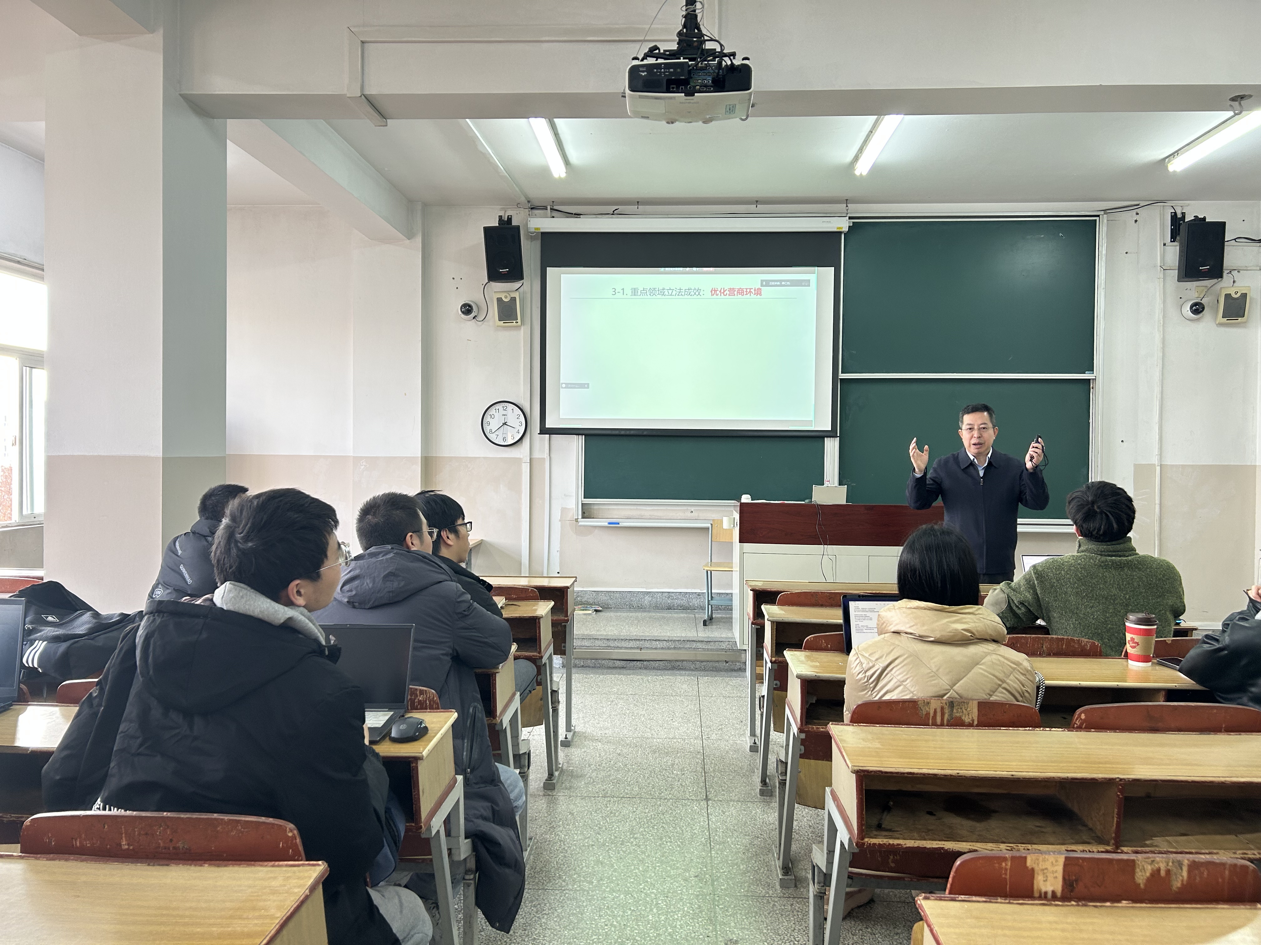 郭曰君教授作了会议总结,感谢黄爱武局长分享司法履职经验,让学生更加深刻地理解浦东新区改革发展法治保障背后的法律支撑。最后,本场讲座在与会老师和同学们的热烈掌声中顺利结束。