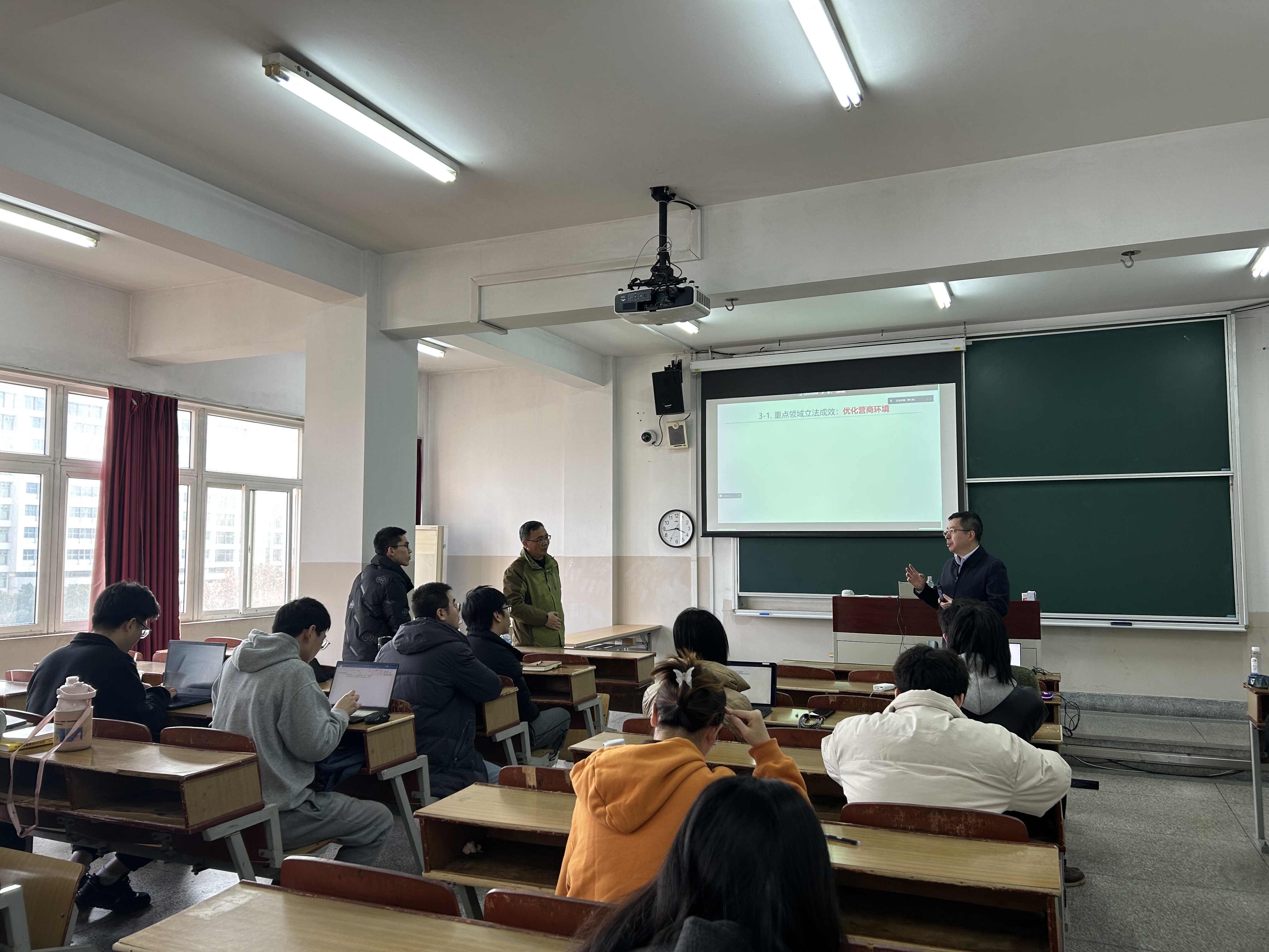 在交流讨论环节,同学们围绕浦东新区改革发展法治保障主题提出了问题。黄爱武局长耐心解答学生的疑问,并寄语学生们一定要具备扎实的法律专业基础,为就业作准备。黄爱武局长帮助大家分析了律师职业的特点,并认为从事律师职业要赢得客户的信任,需要注重言行举止。