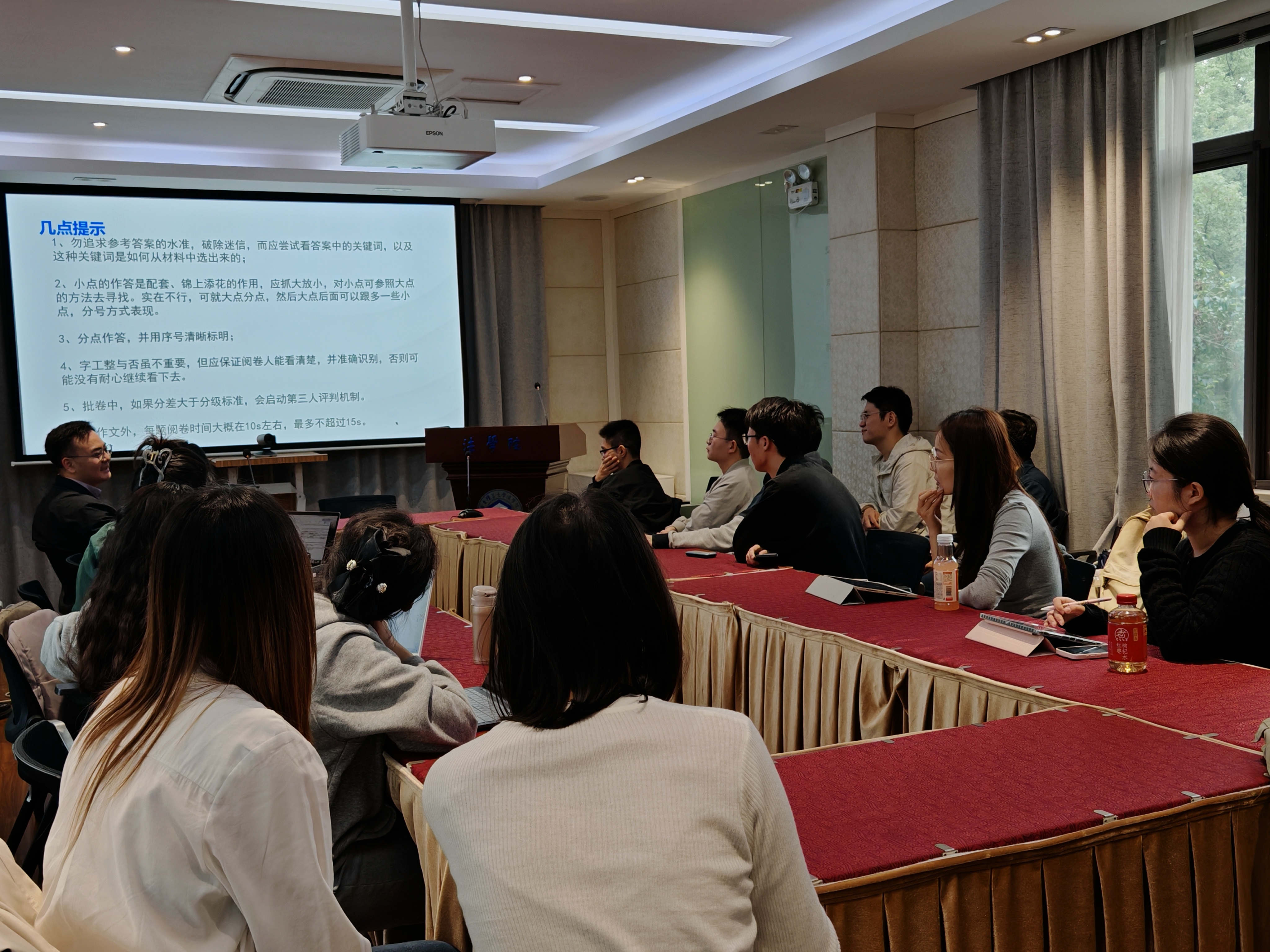 分享会上,张旭东分析了公务员申论考试的总体特点。他指出考生若想脱颖而出,必须掌握核心技巧,“从材料中提取关键信息”的能力是得分的基础。随后详细解释了“按点给分”和“关键词评分法”的规则,答案的分点清晰、逻辑严谨、关键词前置至关重要。