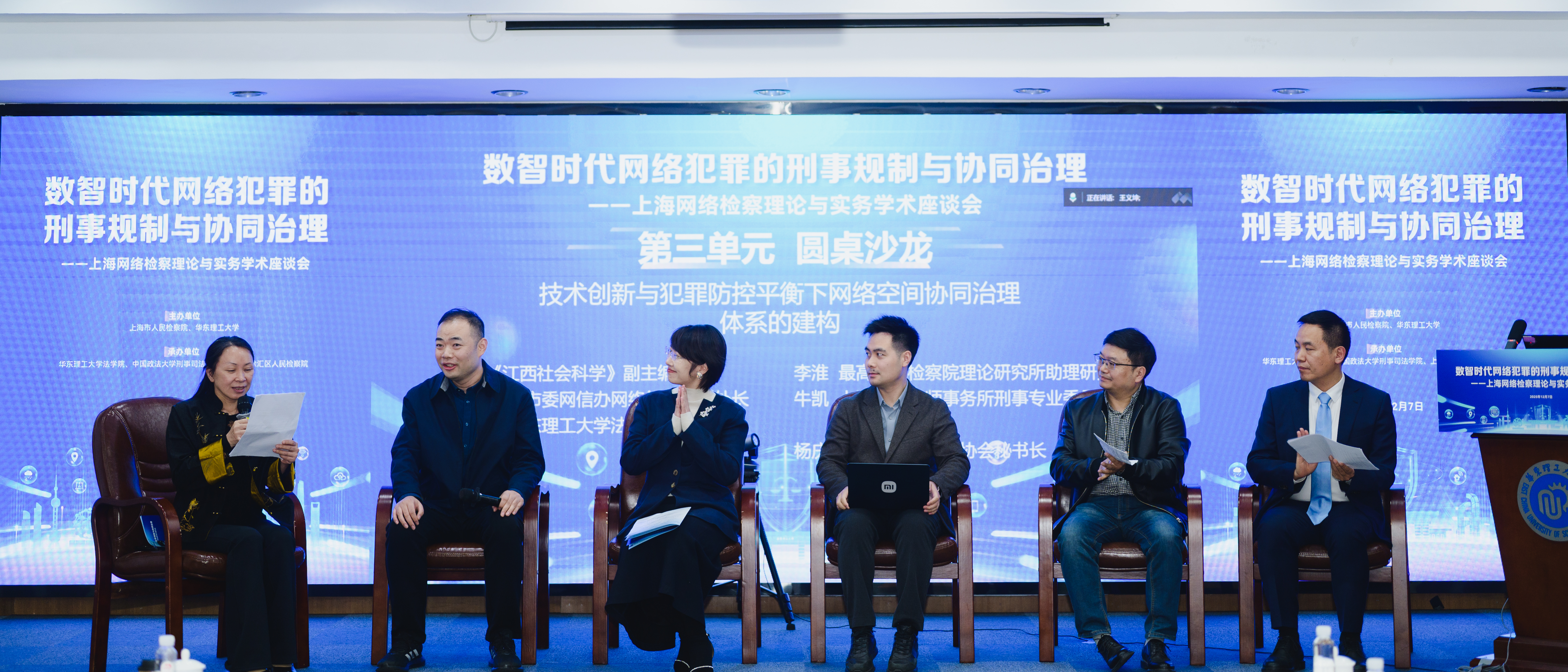 第三单元为圆桌沙龙,由《江西社会科学》副主编叶萍主持。上海市委网信办网络管理处副处长孔岩,我校kaiyun开云官方副教授肖梦黎,最高人民检察院理论研究所助理研究员李淮,上海汉盛律师事务所刑事专业委员会主任、高级合伙人牛凯,上海市电子商务协会秘书长杨庆发表了各自的观点。